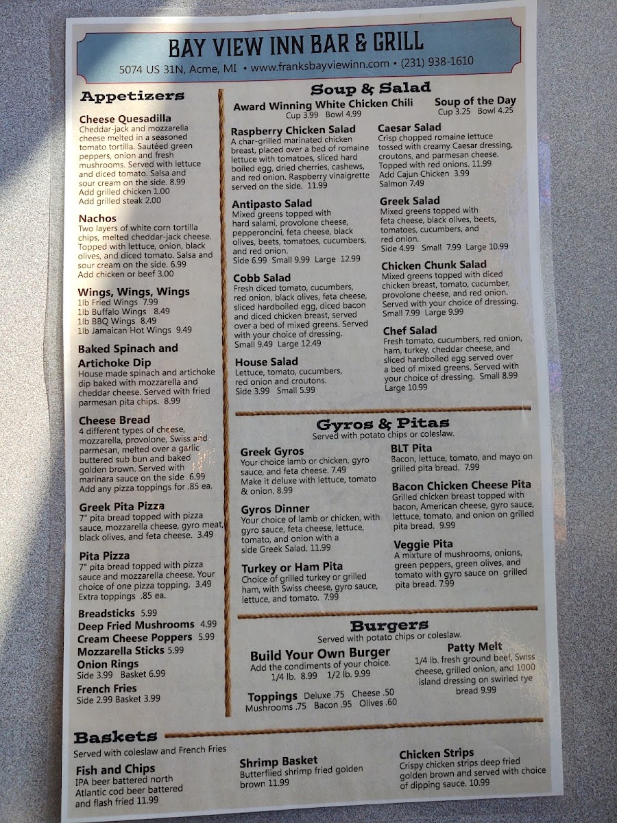Welcome to Bayview Inn Bar & Grill, a charming eatery nestled at 5074 US-31 in Williamsburg, MI, offering mouthwatering dishes with a stunning view of the bay. Their menu showcases a delightful mix of flavors, highlighted by the Award-Winning White Chicken Chili and the refreshing Raspberry Chicken Salad, featuring chargrilled chicken atop a vibrant bed of romaine, topped with dried cherries and cashews.