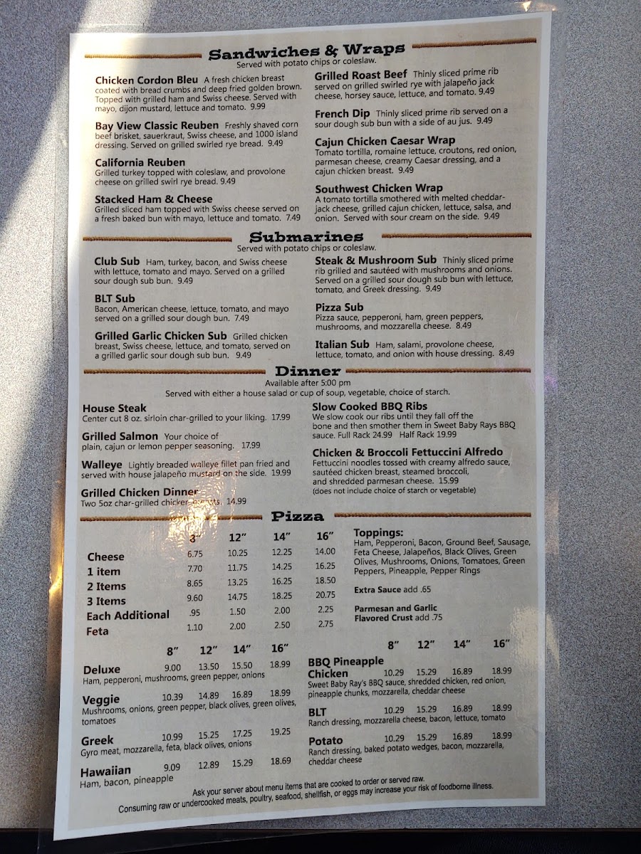 For pizza lovers, the customizable options let you craft your perfect pie, complemented by a selection of fine red wines like Meiomi Pinot Noir and LaTerre Cabernet. Guests rave about the warm atmosphere and attentive service, making it an ideal choice for families or a casual evening out. Whether dining on the scenic outdoor deck or inside, the experience at Bayview is sure to delight. Don't miss a chance to unwind with flavorful dishes that never disappoint!